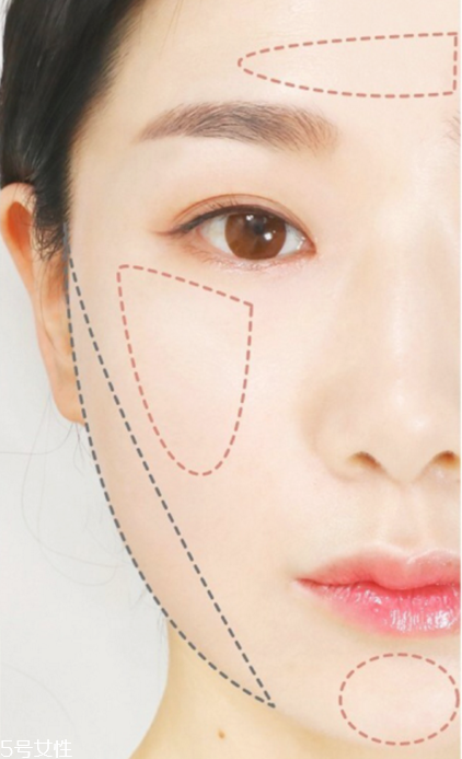 修容只需在臉外角部分畫上修容,高光涂抹在顴骨額頭下巴部分,但是在中央稍微偏外角的地方畫高光效果會更自然一些。