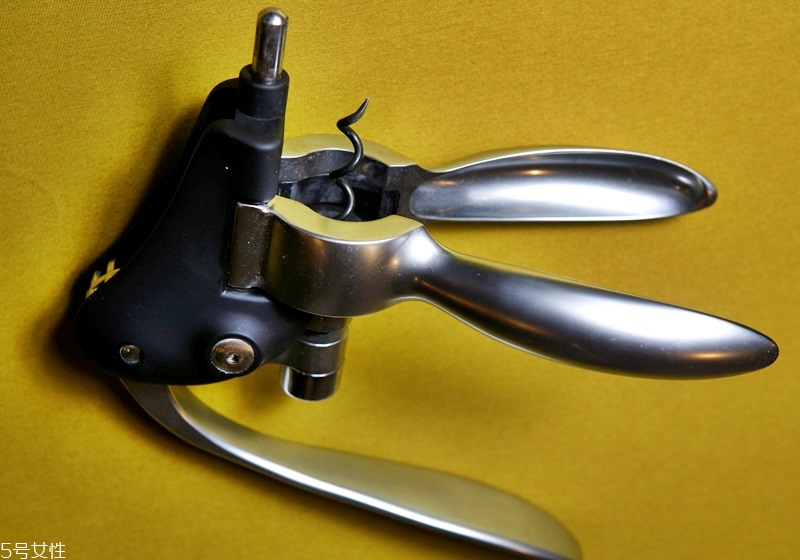 1.將開瓶器夾住瓶口后,左手握住夾端,右手握住另一端把手。