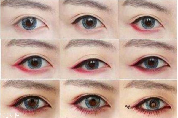 笨也木事,一邊看一邊試試好吧!開(kāi)始咯!底妝后,在標(biāo)示的地方畫一下第一個(gè)顏色最淡的眼影。接著畫一下第二個(gè)顏色的眼影。然后畫一下第三個(gè)顏色最濃的眼影。最后拿一個(gè)又黑又亮的眼影畫一下內(nèi)外眼角部分。準(zhǔn)備下顏色最紅的口紅和Vaseline,也可以替代紅色眼影。在雙眼皮Line上面擦一下Vaseline,這樣才妝后眨了眼不弄花了。然后在標(biāo)示上的地方畫一下Vaseline和紅色口紅混合在一起的。最后描一下上下眼線,內(nèi)眼角要尖尖地描一下。完成!怎么樣啊?這個(gè)化妝法很簡(jiǎn)單吧!我早說(shuō)嘛,手笨也能做到的!再加上最后涂最紅色的口紅即可!