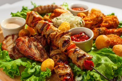一、燒烤(barbecue),可能是人類最原始的烹調(diào)方式,是以燃料加熱和干燥空氣,并把食物放置于熱干空氣中一個(gè)比較接近熱源的位置來(lái)加熱食物。一般來(lái)說(shuō),燒烤是在火上將食物(多為肉類)烹調(diào)至可食用,因此臺(tái)灣亦有稱此為烤肉;現(xiàn)代社會(huì),由于有多種用火方式,燒烤方式也逐漸多樣化,發(fā)展出各式燒烤爐、燒烤架、燒烤醬等。燒烤本身也成為一種多人聚會(huì)休閑娛樂方式或者是生意。不論在亞洲、美洲和歐洲,燒烤通常是小至家庭,大至學(xué)校的集體活動(dòng)以及一些公司組織的集體活動(dòng)。